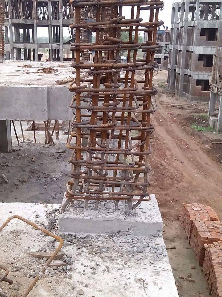 এই ছবিটা কন্সট্রাকশন কাজের একটা বড় ধরনের ফল্ট এর। ছবিটাতে ভালো করে তাকালে দেখবেন একটা কলামের রডগুলোরো ঠিক গোড়াতে বেকে আছে এবং সেগুলো পুরো রডের খাচাটাকেই একটা সাইডে হেলে ফেলেছে। এই ধরনের ঘটনা মুলত দুইটা কারনে ঘটে